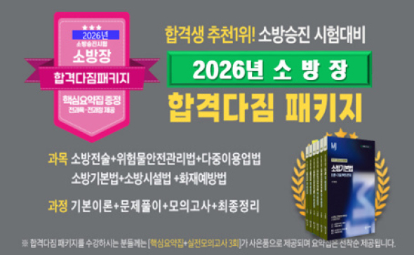 MJ소방 교수님들께 감사 인사 드립니다. 소방교 시험에 이어 소방장 시험에도 합격할 수 있도록 좋은 강의와 책으로 도움을 주셔서 감사합니다.